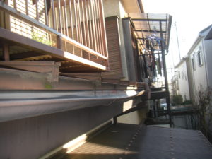 水色で囲んだところが破風板ですが塗装が剥がれていました。