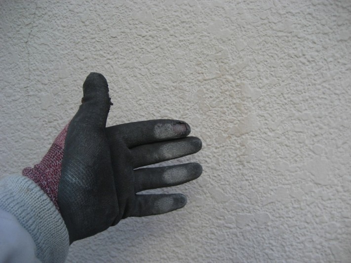 先ほどの話の中で、黒い手袋で外壁を撫でた際に手袋に塗料が付着していました。