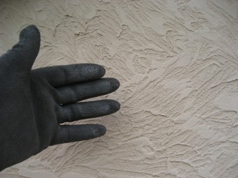 外壁の劣化具合を確認するべく触って確認しますと、黒い手袋に外壁の白い塗装がべったりと付いてしまいました(>_<)…。