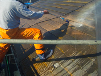 屋根塗装と外壁塗装を行う前に、高圧洗浄で丸洗いします。