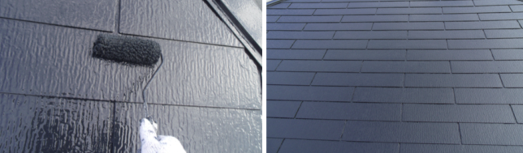 その後、サーモアイSi用の下塗り材を塗っていきます。この、サーモアイSiとは遮熱塗料のことで、暑さ対策に繋がります。また、下塗りは、中塗りや上塗りの密着を良くさせるためにかなり重要な作業となります。